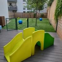 Notre crèche offre un espace sécurisé conforme à l'agrément PMI (Protection Maternelle Infantile), permettant d'accueillir jusqu'à 35 enfants. Elle s'étend sur une superficie de 280 m², comprenant notamment un jardin. Cet espace offre aux enfants la possibilité de s'aérer, de bouger et de développer leurs capacités motrices.